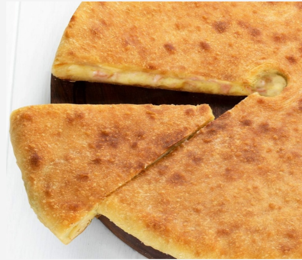 Пирог из тонкого живого теста с ветчиной и соленым сыром сулугуни.