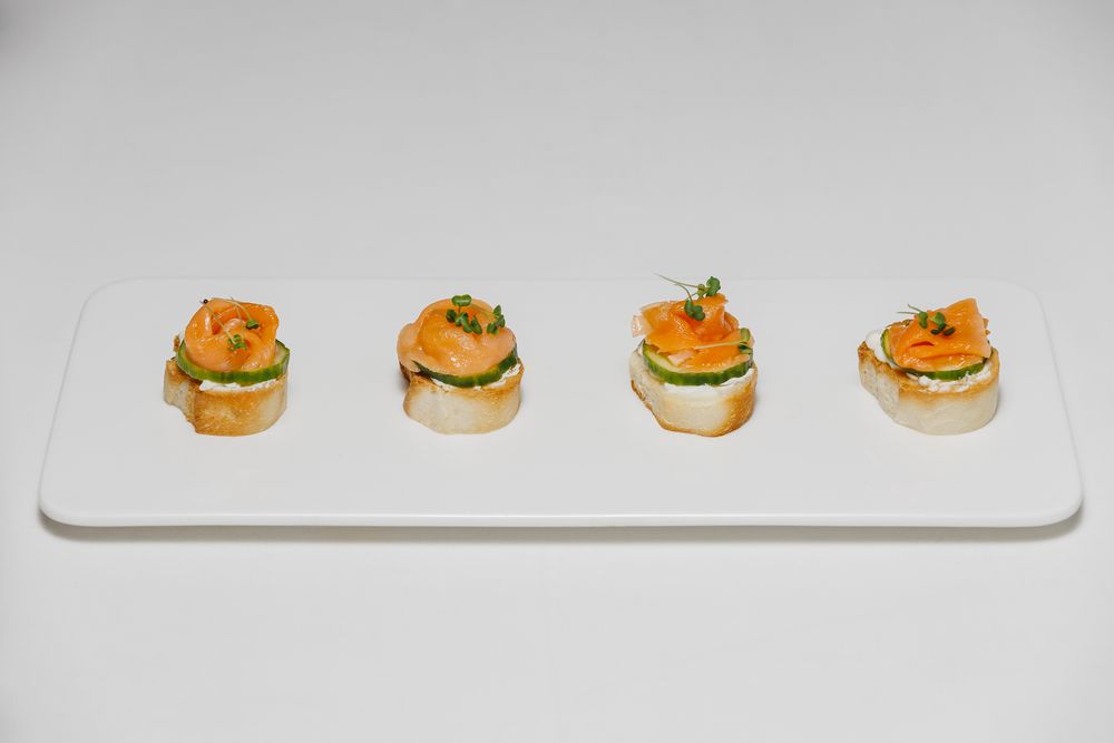 Тапас на белом багете с лососем и огурцом