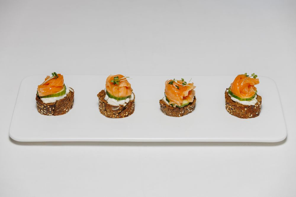 Канапе на белом хлебе с лососем