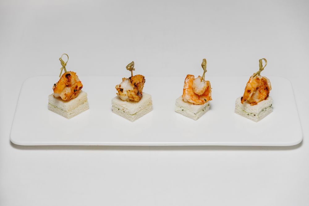 Канапе на белом хлебе с креветкой