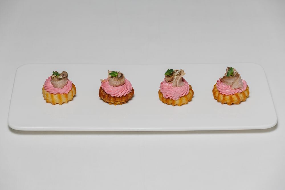 Тапас на картофельной вафле с ростбифом и пармезановым муссом