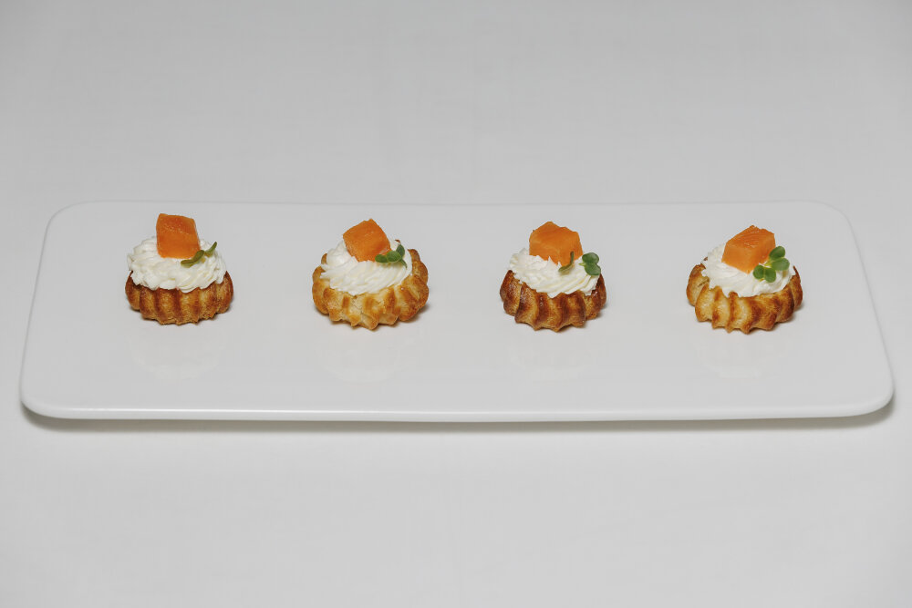 Профитроли, кремчиз, лосось