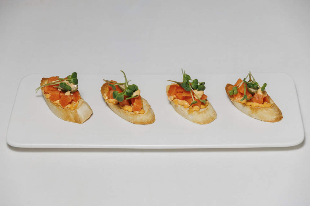 Брускетта с лососем и манго