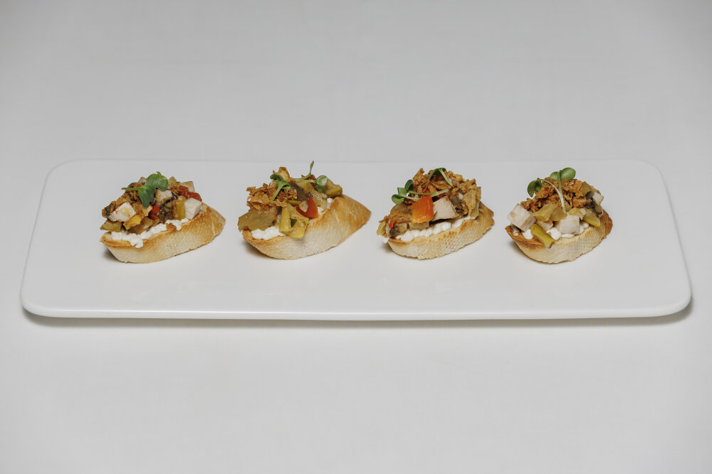 Брускетта с цыпленком и вялеными томатами под соусом барбекю